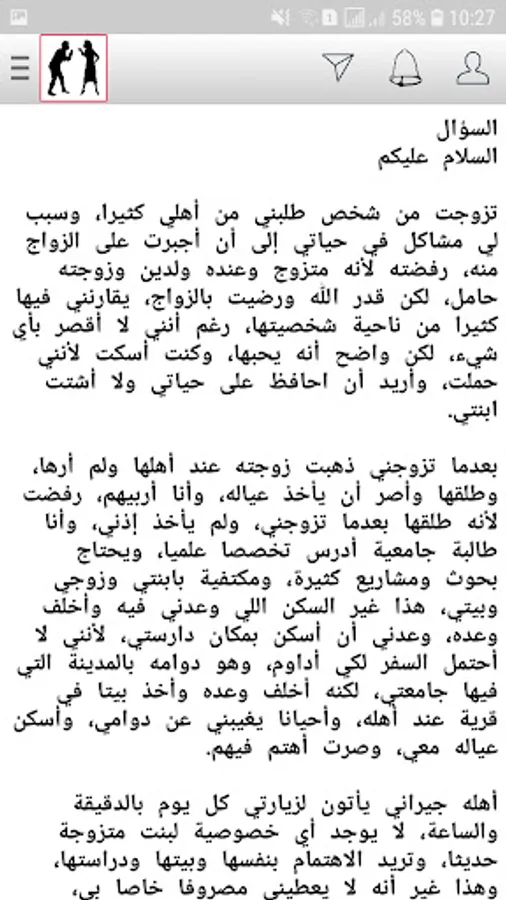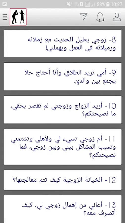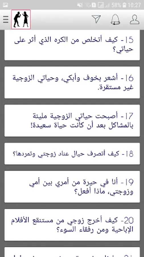 It is an application that includes several consultations regarding several marital problems in addition to responding to these questions and inquiries, so that many people raise their marital problems and in return a group of specialists provides a set of marital advice in order to maintain the marital relationship, and includes consultations among its folds Important topics such as how to treat a wife, the wife’s obedience to her husband, the husband’s rights over his wife, and other important topics.