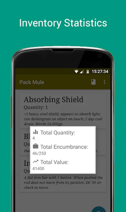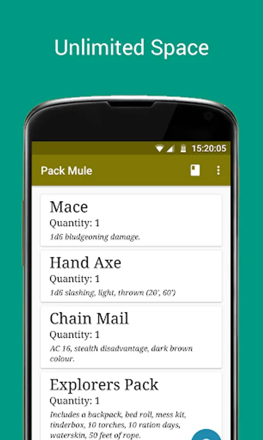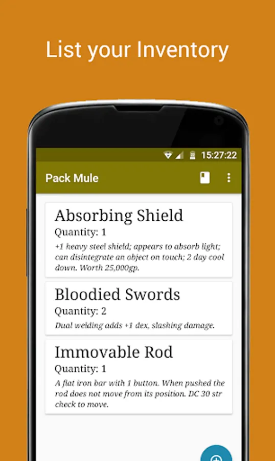 By adapting the tried and trusted inventory style of simply writing a Name, Quantity and Description - your Dungeon and Dragons, Pathfinder or any other role playing game will have such an effortless inventory, you won't ever go back to pen and paper.