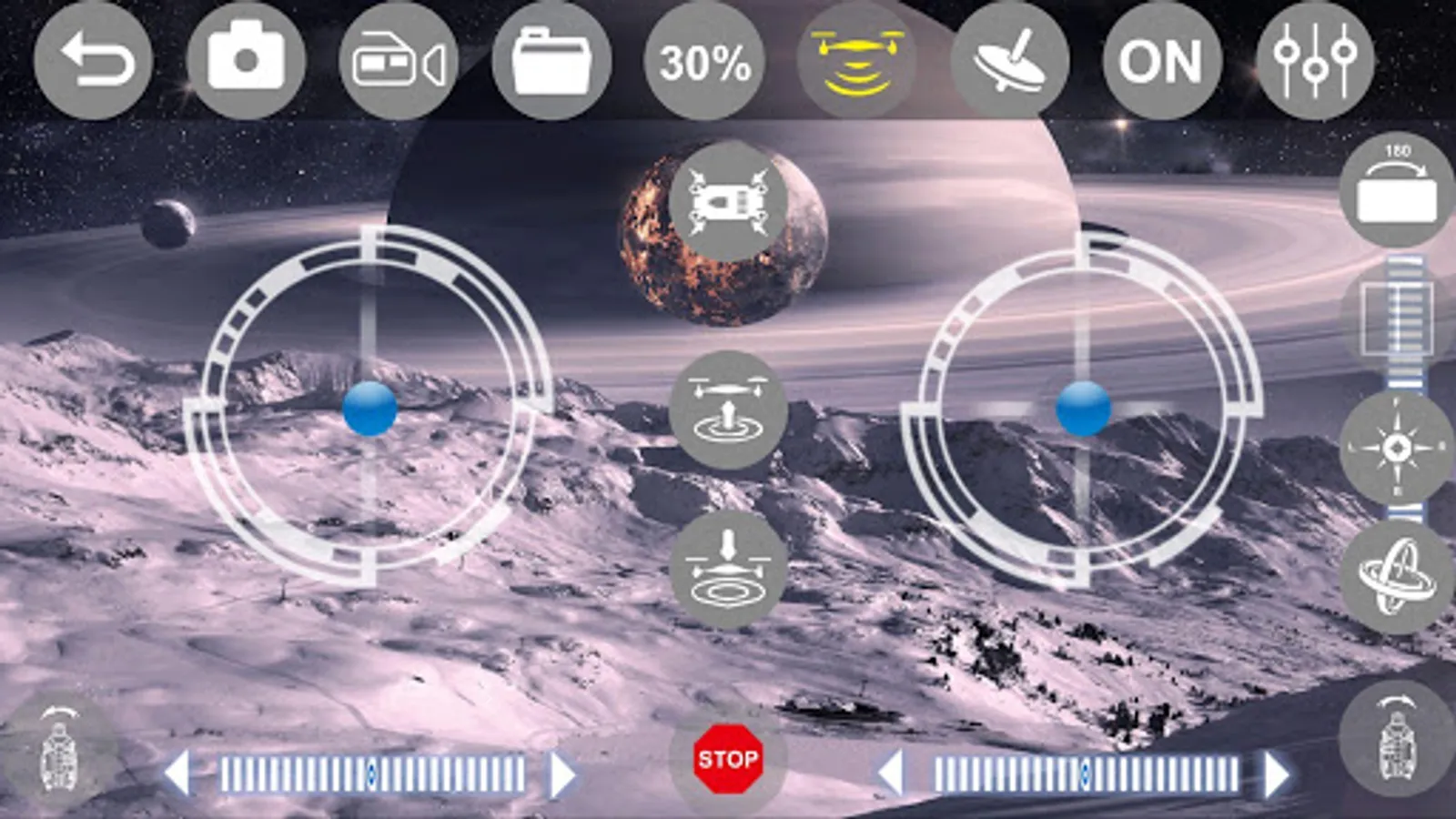 This APP has a four-axis aircraft flight control and browse hung on the four-axis aircraft instantaneous feedback of the camera module video streaming capabilities. At the same time supports the following features.