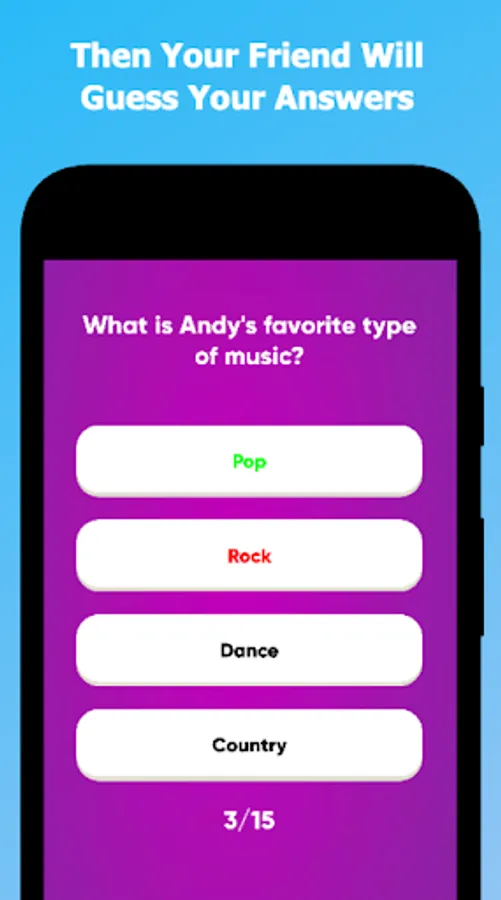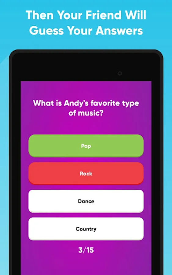 There are a total of 18 different tests to try out in this friends quiz game and 2 game modes: