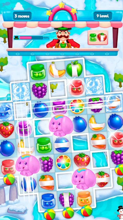 The funny clown Bim Bom will always help along your adventure. Match fruits to collect colorful balloons and help the rabbit-mother Lily find her babies while staying on the alert for the ringmaster Carlo. Overcome him by matching fruits to create bomb-fruits and striped fruits to save every animal you find in Madagascar Circus!