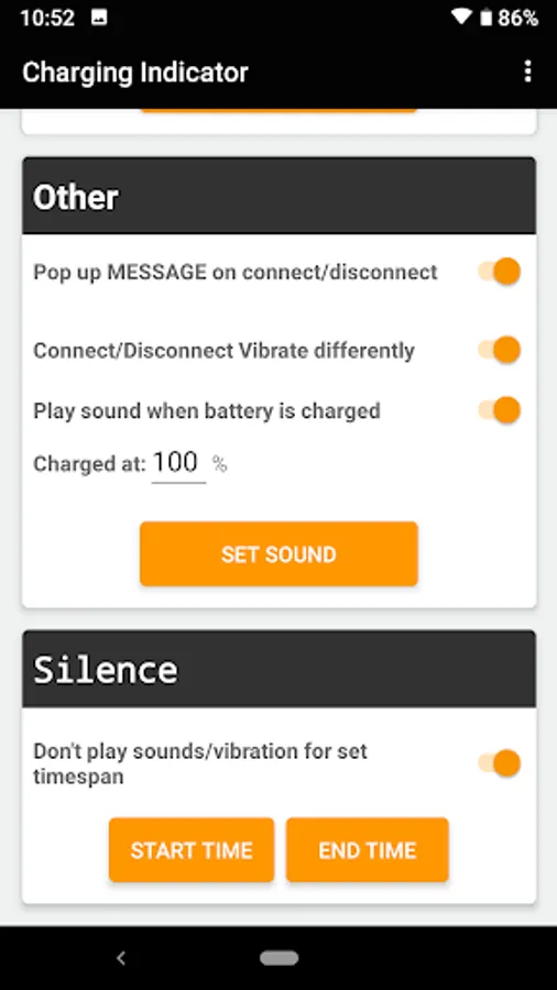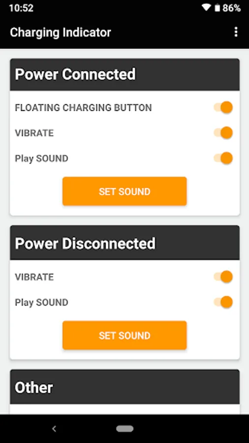-can set/play sound when power is connected, disconnected and/or battery is charged