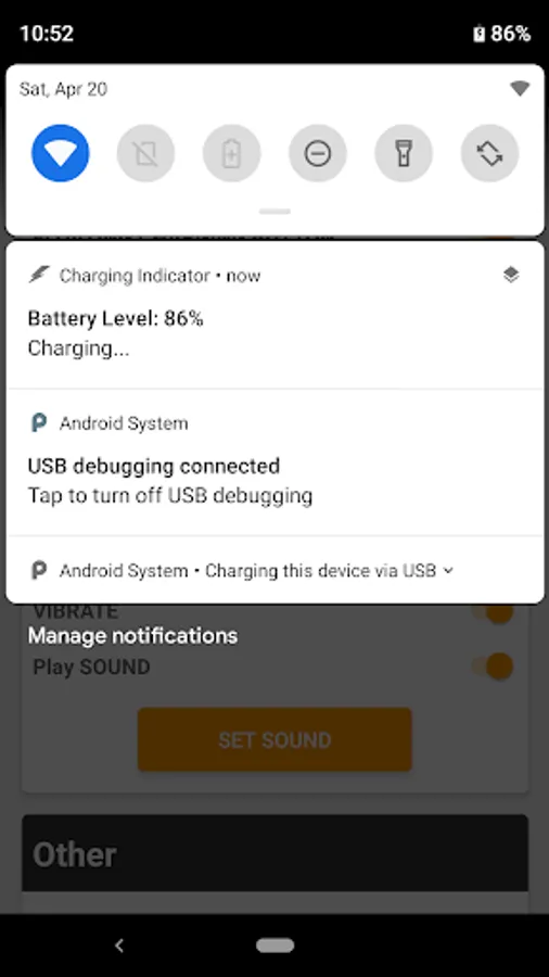 I bought a wireless charger for my car and was unable to glance at the phone to tell if it was charging or not. I found the charging symbol on the battery icon is difficult to resolve when in the car. So I created an app that would make it easier to tell when the phone is charging. This really helps when one is driving and wants to be able to glance at the phone to make sure it's still receiving power from the wireless charger. Hopefully, this can help others like it helped me. :)