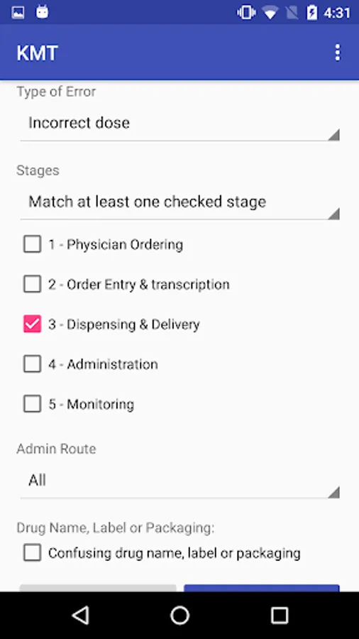 Welcome to the ISMP Canada Medication Incident Analysis Knowledge Mobilization Tool (KMT). The KMT is an educational tool providing healthcare practitioners with relevant, context-specific information at the point of conducting medication incident analyses or performing quality improvement initiatives. Users can search for medication incident analyses and learning, using variables, such as, drug name, type of error, stage in the medication-use process, and more. The search conducted by the KMT will retrieve from the ISMP Canada database of medication incident analyses and generate a report containing relevant results in three categories: (1) Published Incidents; (2) Contributing Factors; and (3) Published Recommendations.