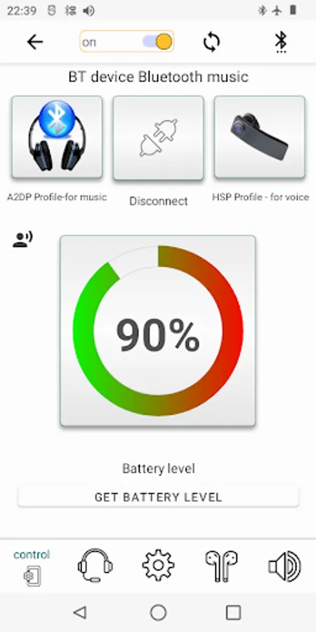 • Control widget toggle sound modes Bluetooth.