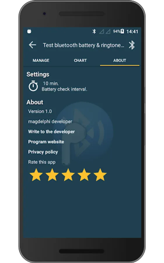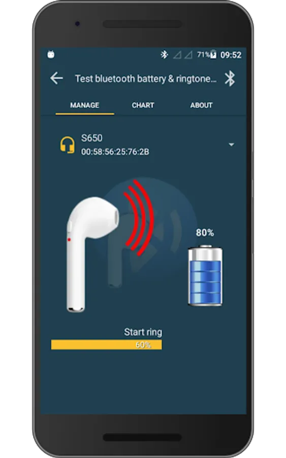 With "Test bluetooth battery & ringtone PRO" you can do a quick test of the headset call signal and know the headset battery level.