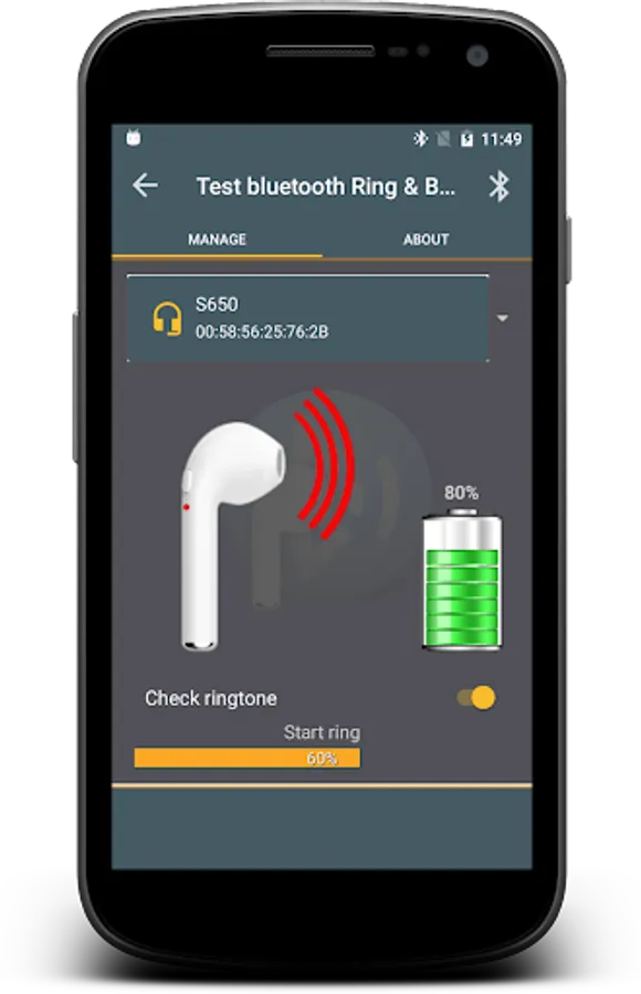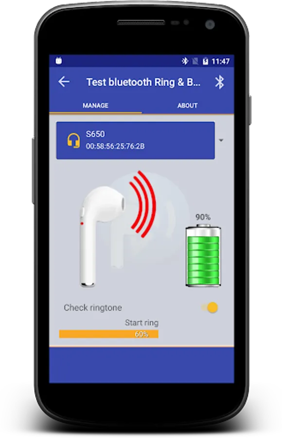 Use "Test bluetooth Ring & Battery" to check if the Bluetooth headset is working properly.