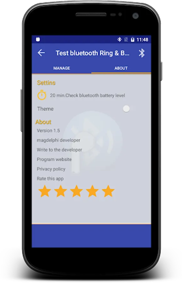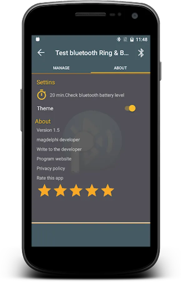 With "Test bluetooth Ring & Battery" you can do a quick test of the headset call signal and know the headset battery level.