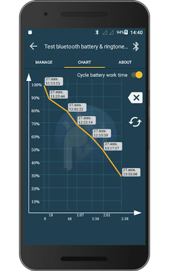 Depending on the Bluetooth class of the audio device, the accuracy of the charge data is different: