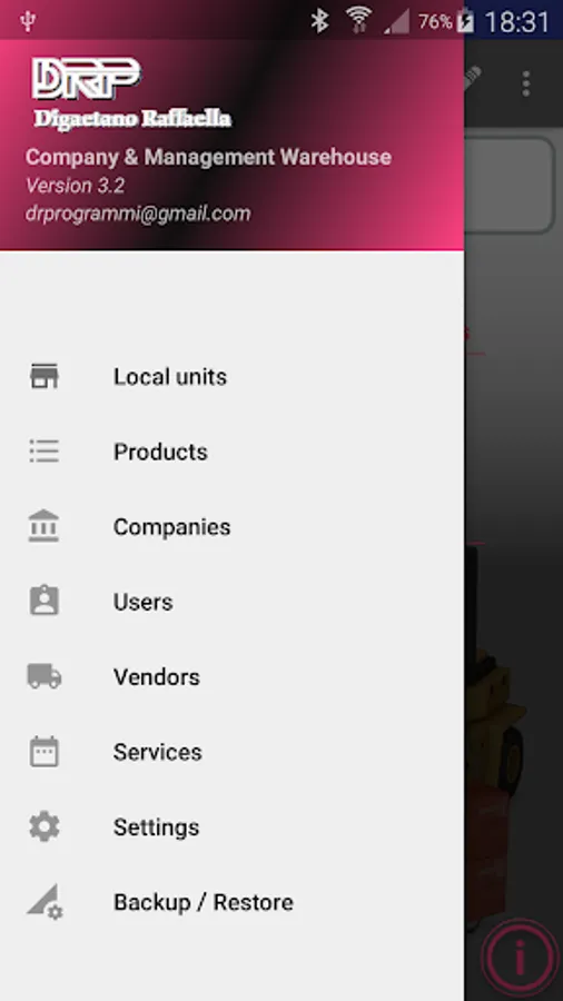 -BACKUP AND RESTORE: you can save the database, the images and the documents stored and you can restore choosing from the list of backups, an old backup or you can send the files via email or you can share on Google Drive for added security.