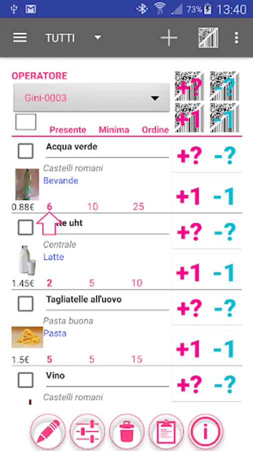 -WAREHOUSE STOCK: you can manage the amount present with a touch thanks to the buttons +1, -1, + N, -N (also by reading barcodes) and you can edit more products simultaneously with the function SETTING multi selection.
