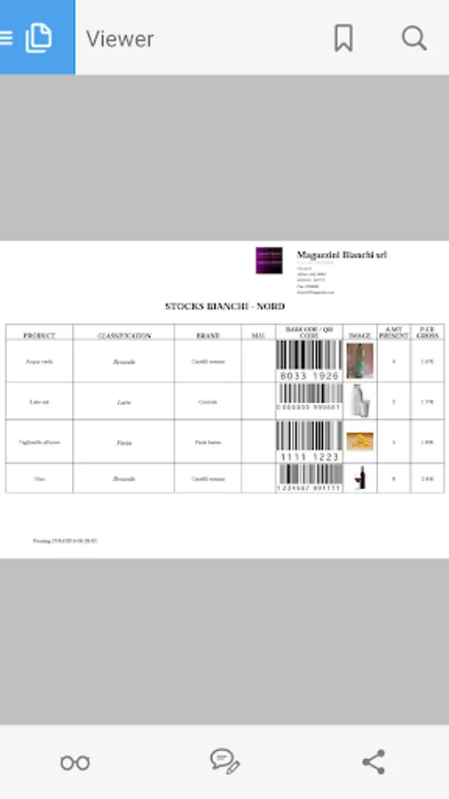 -REPORT: you can create in an instant LIST OF PRODUCTS, ORDER OF PRODUCTS IN WAREHOUSE, or ORDER for a specific VENDOR, the WAREHOUSE INVENTORY, LABELS BARCODE WITH PRICES, the TRANSITIONS OF STOCKS. In some reports you can be displayed graphically barcode formats: EAN_13, EAN_8, UPC_A, UPC_E.