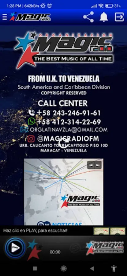 With this App you can listen to MAGIC FM programming 24/7, just by pressing the PLAY button.