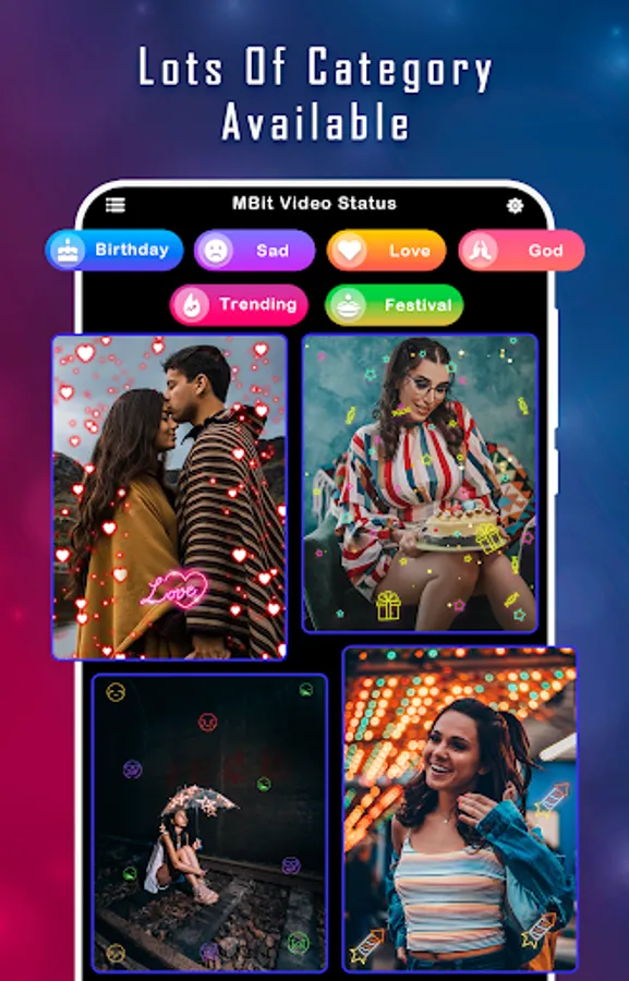 - Select photos from gallery apply MV Master Video Status with beauty video & cool video effect.