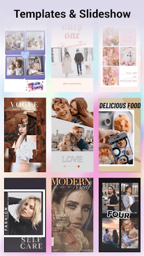 * Add your pictures or videos, and get an exquisite video full of cool effects and popular music.
