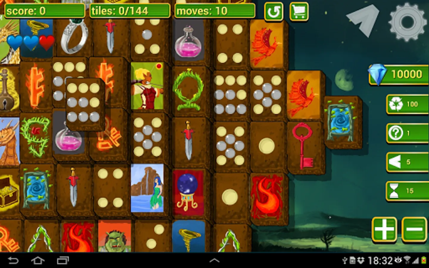 Find pairs and collect magical gems through multiple levels of raising difficulty in this unique game inspired by mahjong solitaire.