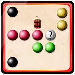 In this puzzle game, slide marbles to form lines of five and clear the board. Includes HD graphics, dynamite, stone marbles, and question marks.