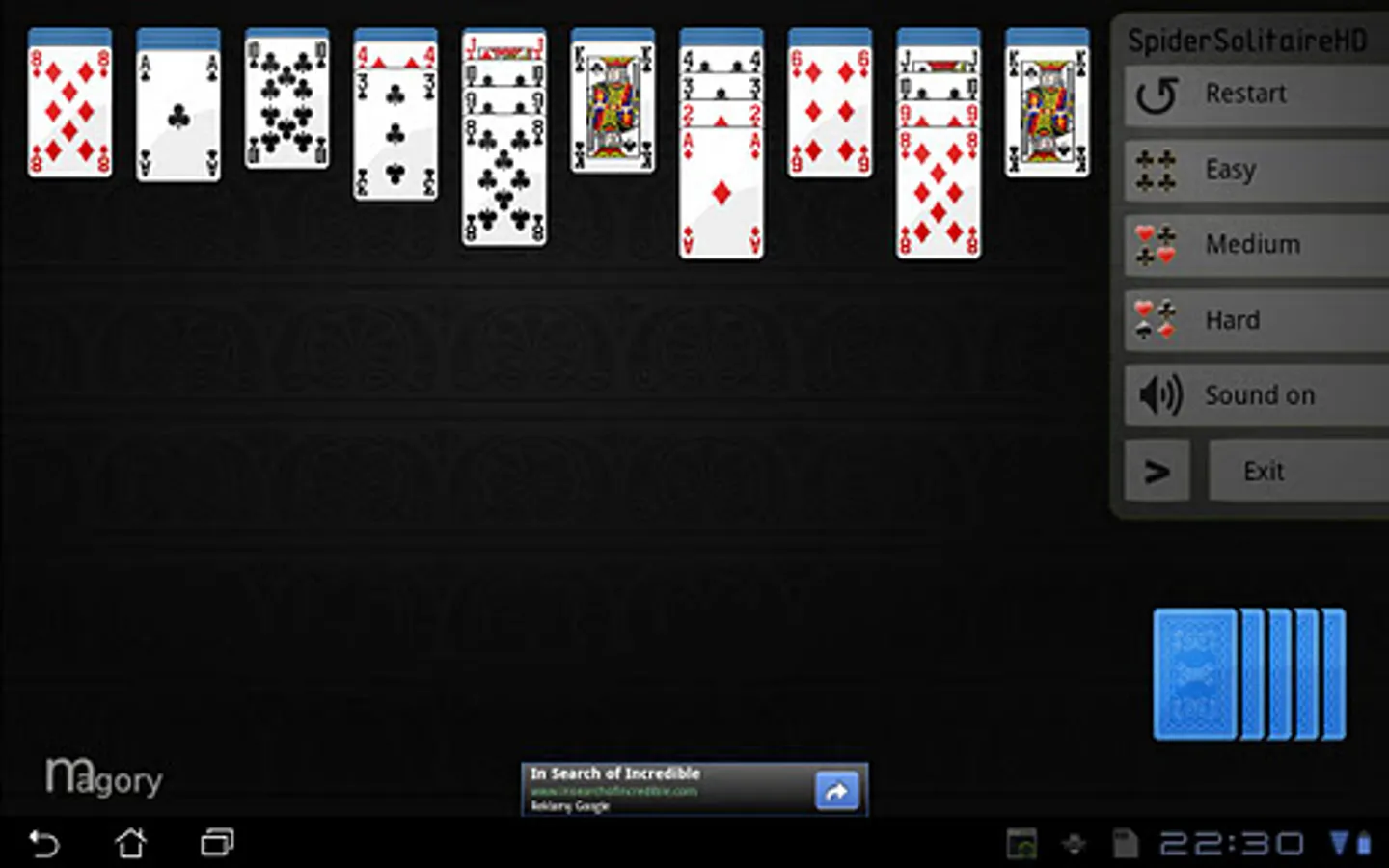 Spider Solitaire HD is a spider solitaire game especially designed for large screen tablets.