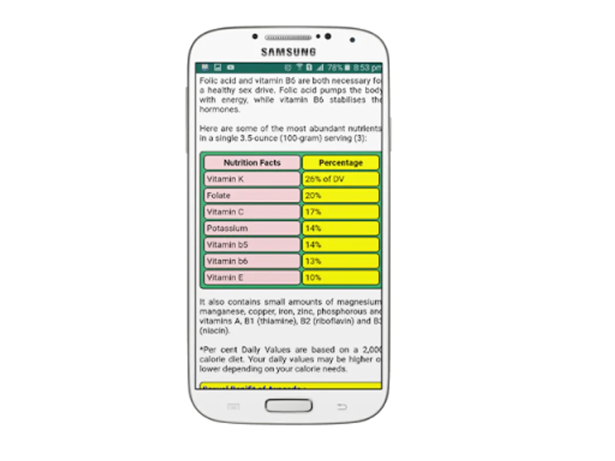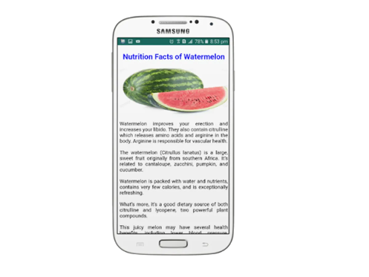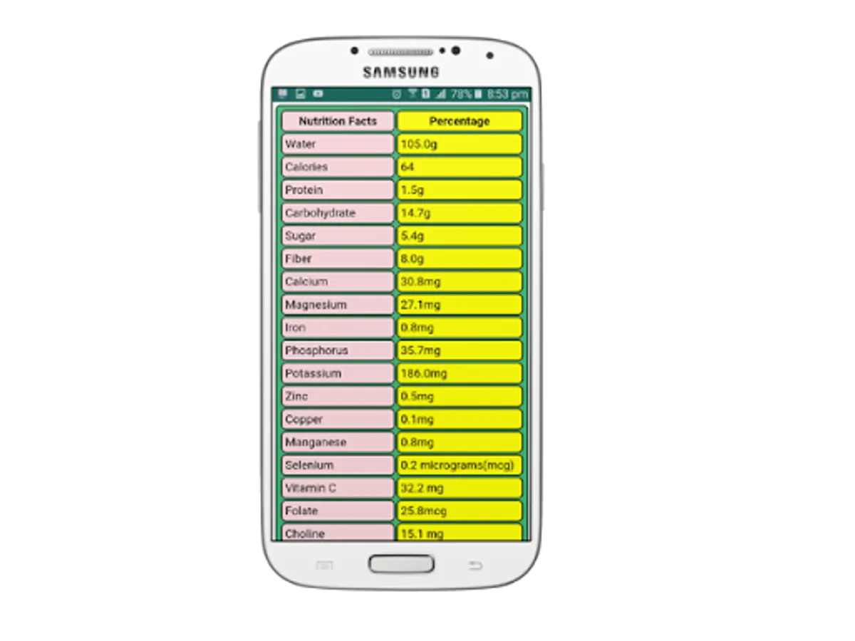 Dear user, At present you should know the healthy food and its nutrition facts.So you can download this apps from play store. Its free to use. So, You can know which fruits what kinds of vitamin and health benefits available. In this apps we added nutrition facts chart, which you can understand very easily. So, download now and enjoy its.