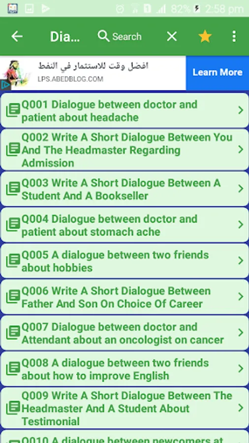 Dear user in this apps you can read more than 100 english conversation or dialogue