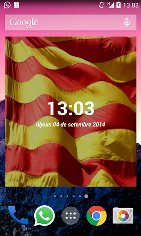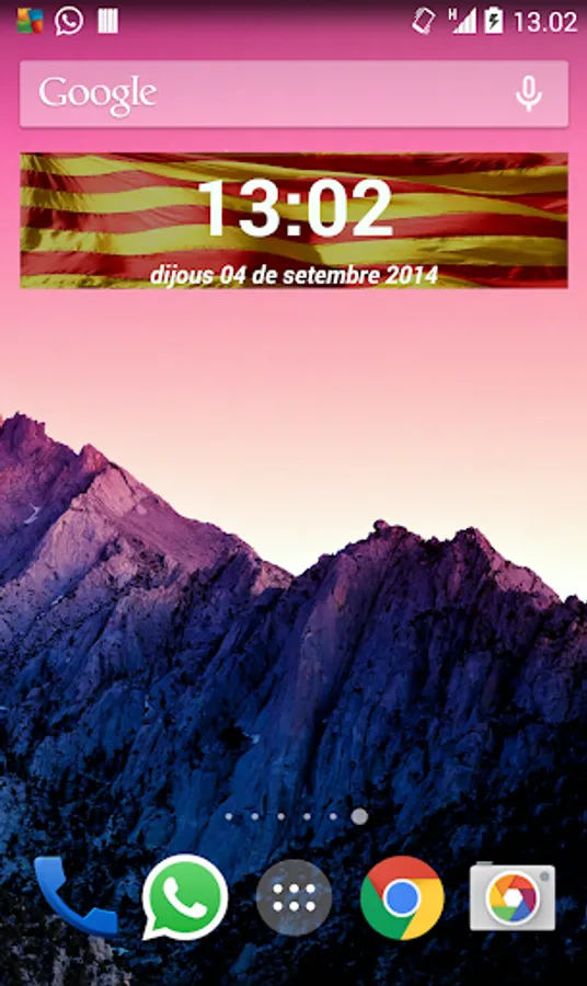 Catalan clock widget that shows the time and date accomplished. If it is pressed on the widget opens the clock app from Android native.