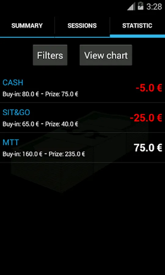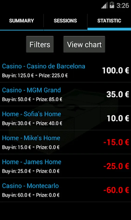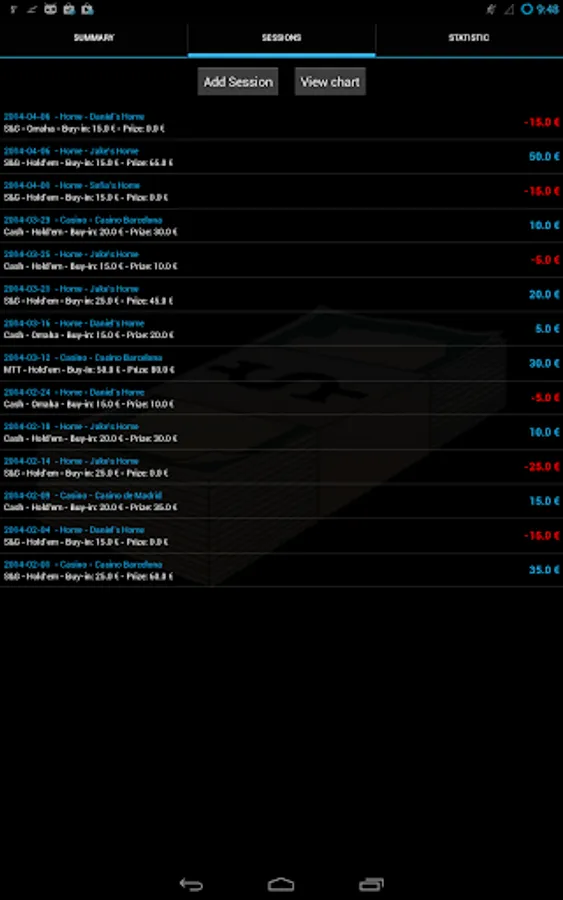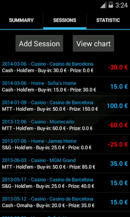 You can track all your poker games consulting statistics on where you win more prizes or where you have lost, or what kind of game you have more money, if playing cash games, sit & go or multi-table tournaments, or if you are better in Texas Hold'em or Omaha.