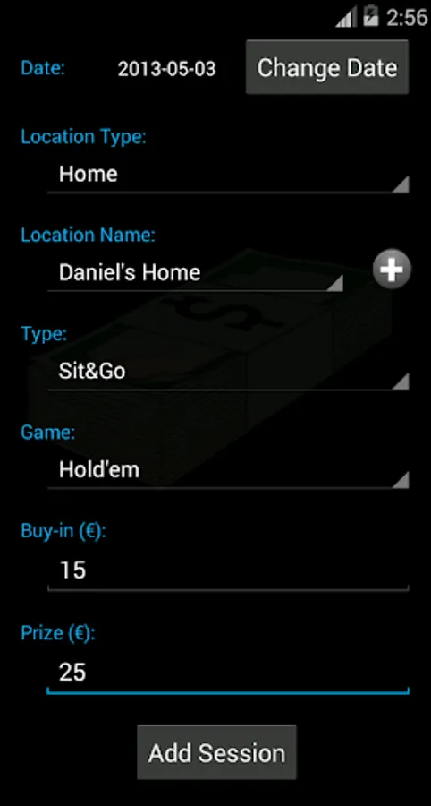 Register all your played poker games, logging the date of the game, where the game was played, the game type (cash, sit&go, MTT), the poker type (Texas Hold'em, Omaha), the buyin and the prize you have won.
