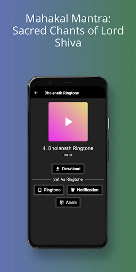 We take pride in selecting high-quality ringtones that are diverse, unique, and enjoyable for the Mahadev Ringtones app. Best of all, they are all free! Downloading ringtones from our app is simple, with just a single click. You can easily set them as your caller, notification, or alarm tones.