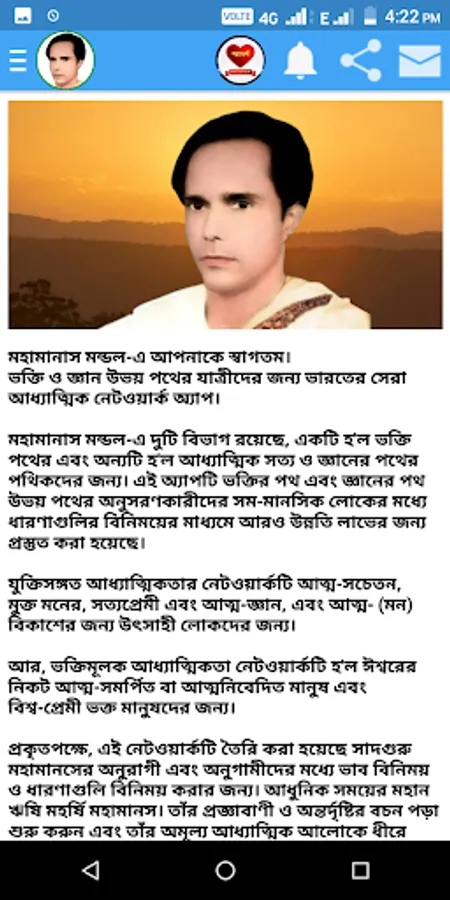 There are two divisions in the Mahamanas Mandal, one is for the path of devotion and the other is for the pathfinders of the path of spiritual truth and knowledge. This app is designed to further improve the exchange of ideas among like-minded people who follow both the path of devotion and the path of knowledge.