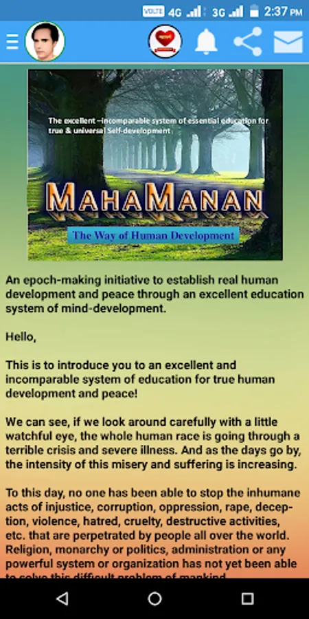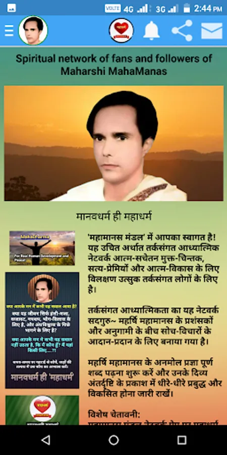 There are two divisions in the MahaManas Mandal, one is for the path of devotion and the other is for the path of true spiritual knowledge. This App has been prepared for the pursuit of both the path of devotion and the path of knowledge and for further improvement through the exchange of ideas among like-minded people.