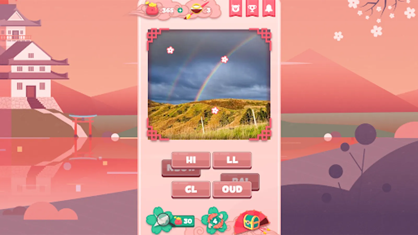 By guessing words, you increase your level. For each new level, you get a part of a hieroglyph. Unlock all the Japanese words!
