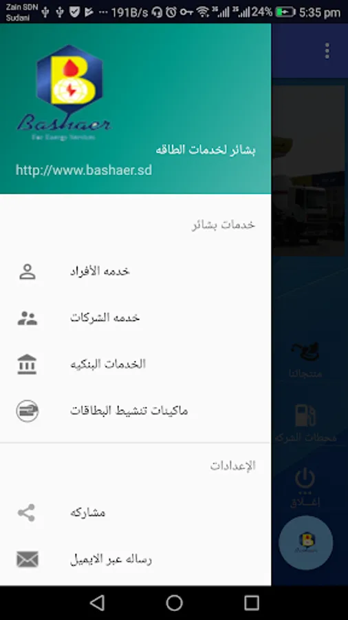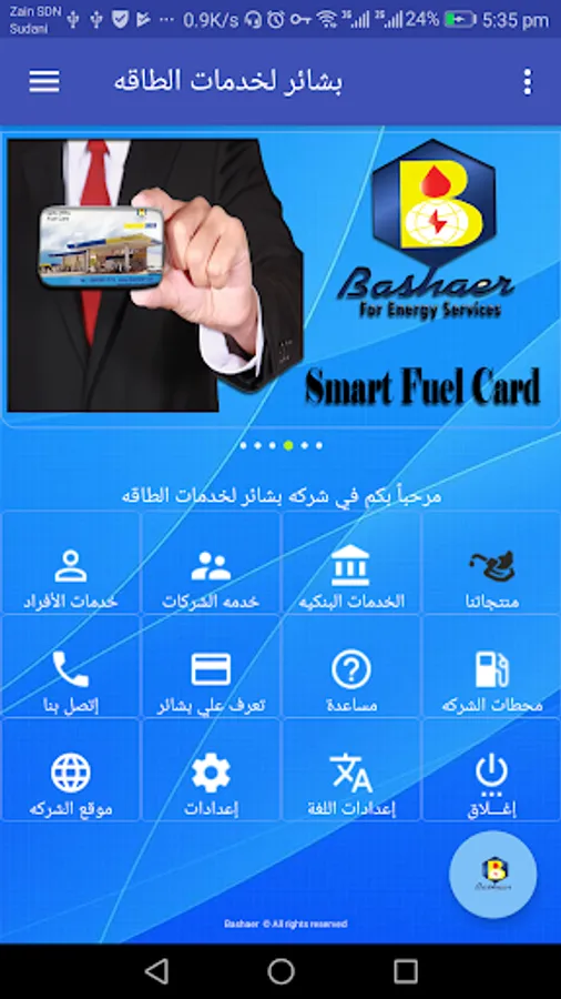 بشائر لخدمات الطاقه يعرض للمستخدم توفر الوقود و المحطات و تغذيه الكرت من البنوك و خدمات أخري