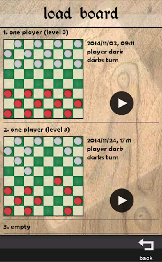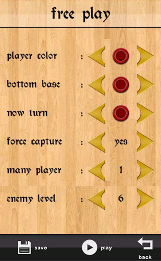 The game is divided into three groups: One Player, Two Player, and Online Play. One Player is a game against the artificial intelligence that consists of 6 levels of difficulty. Ranging from beginner level to advanced level. Two Player is a game between two adjacent players.