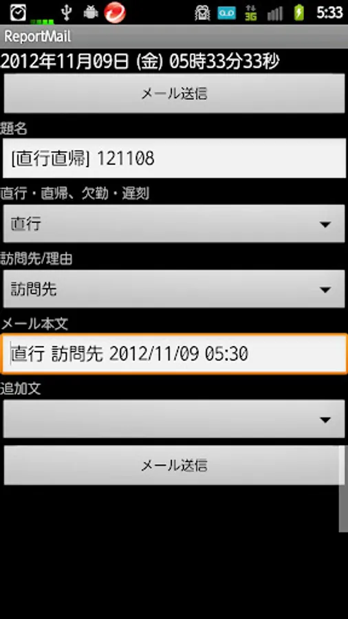 This is the company's standard format, but it is an application that creates only in and mail the title text tap, to start the mailer by specifying the destination you have registered.