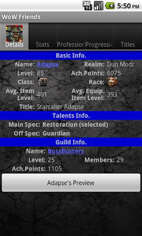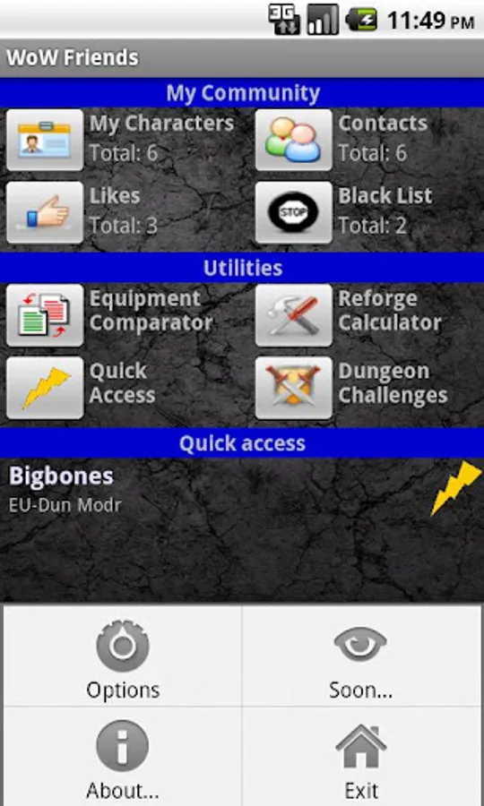 WoW Friends is an application made for checking your closest friends quickly or any character you use to look at in the armory. You will get the fastest access to your favourite information you use to check in them. You can add characters from any realm and country even if you don't know them.