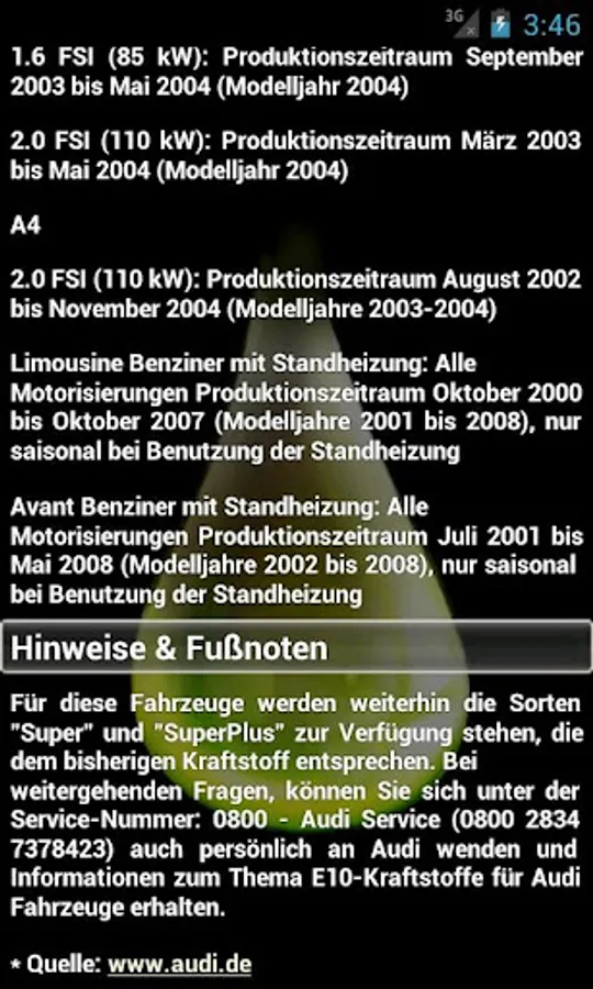 Datenschutz: Die App hat alle Daten dabei und holt oder überträgt keine Daten von oder an uns. Ein Netzwerk benötigt die App nur, damit die Links auf die Webseiten der Autohersteller funktionieren.