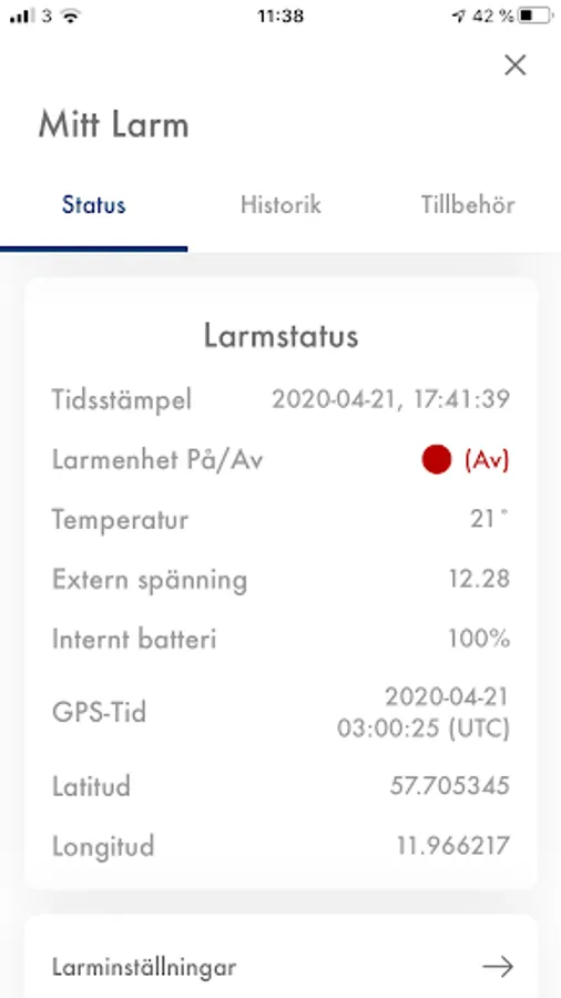 Application for communication with GPS alarm from YachtSafe / VETEL AB.