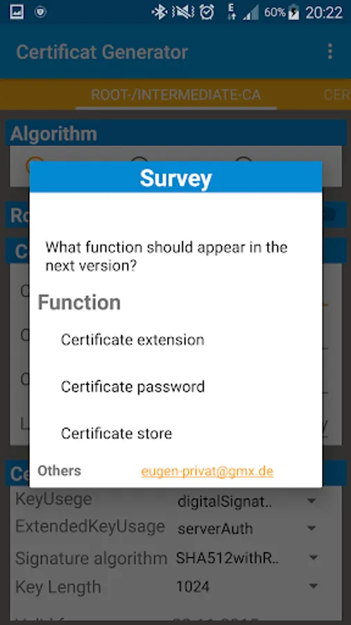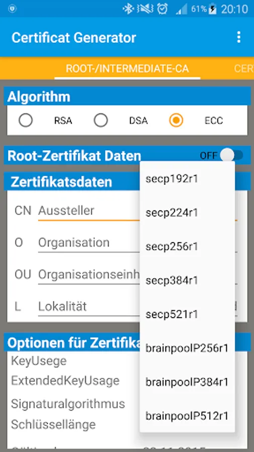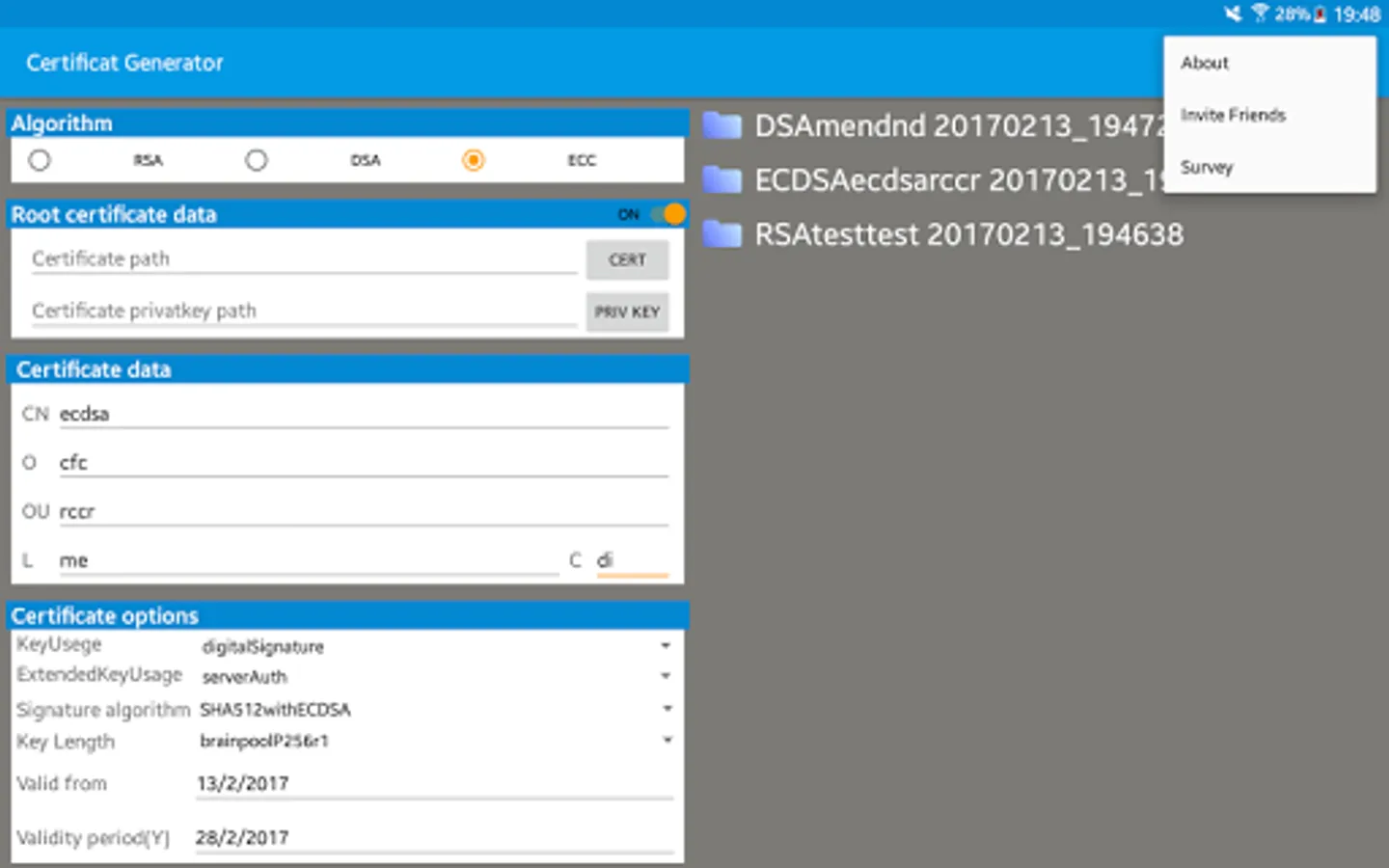 x509 Certificate-Generator generate your own digital certificates. There is a certificate and the associated private key is generated and stored on the SD card. This you can use anywhere as needed. If you miss certain functions, drop me an email.