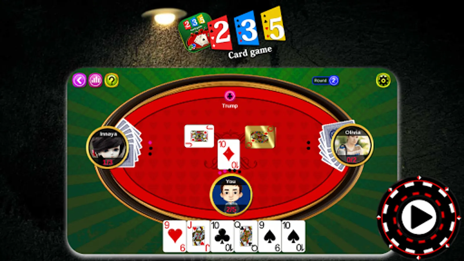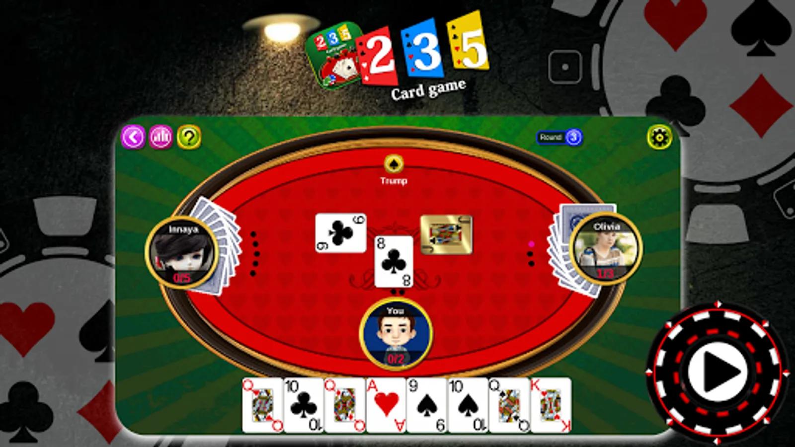 235 Card Game is a strategic trick-based card game played by three players with a deck of 30 playing cards. The game is widely popular in India and in Nepal.Play 2 3 5 Card Game with 3 Players against simulated opponents playing with high-level artificial intelligence.
