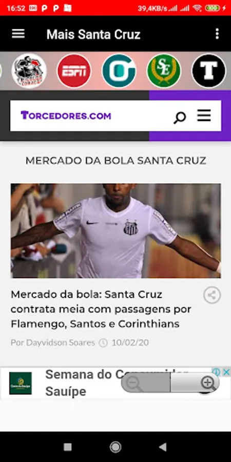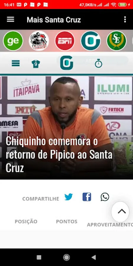 With the "MAIS SANTA CRUZ" application, you can stay on top of everything about the Cobra Coral de Recife, with information from the main internet sites.