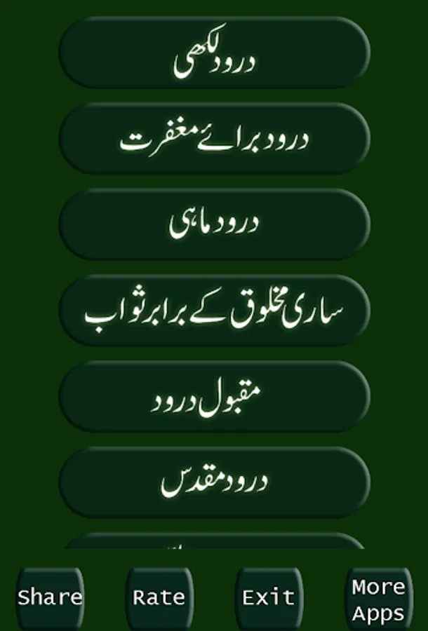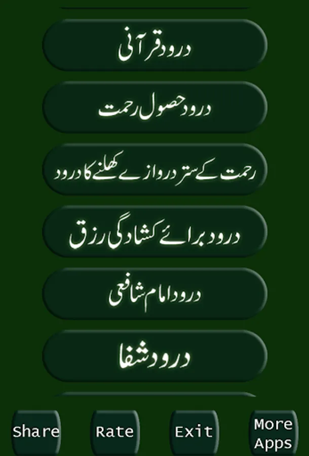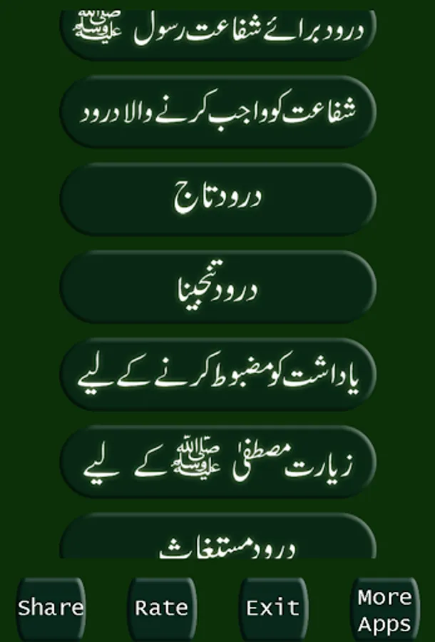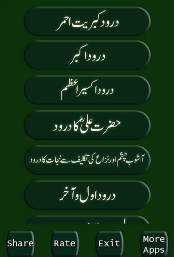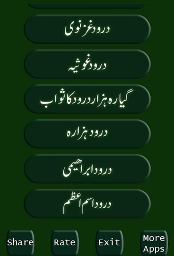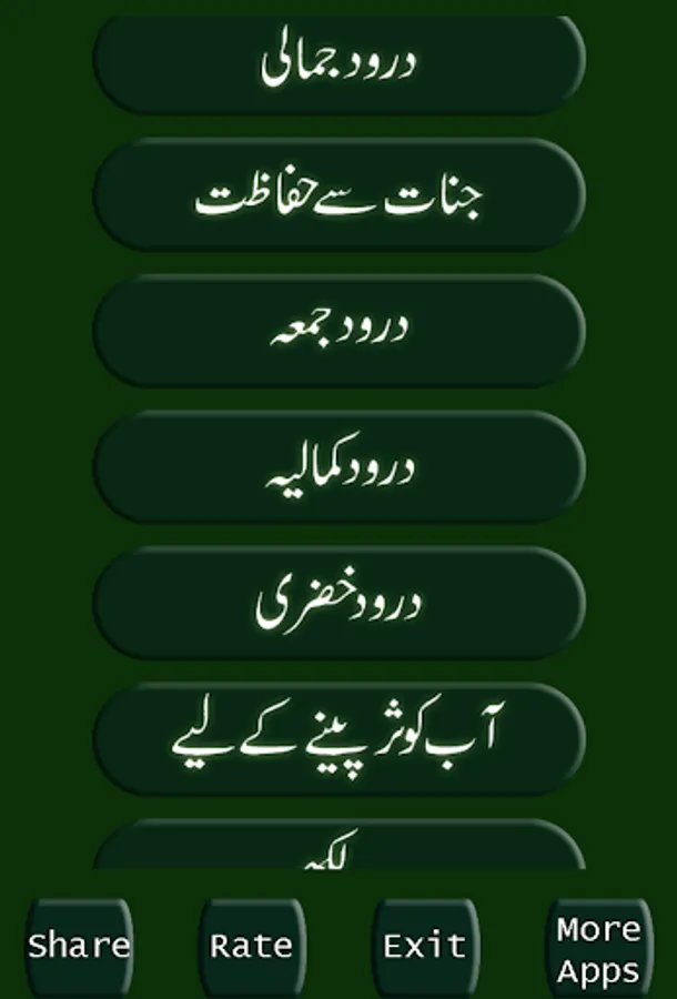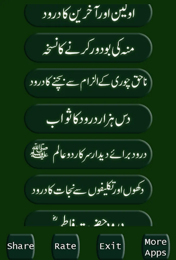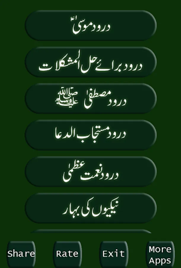 List of duroods are durood kibriyat, akber akseer azam, ali Fatima, ghosia, hazara, jamali, juma, kamalia, lakhi, muqadas, musa, and many others.