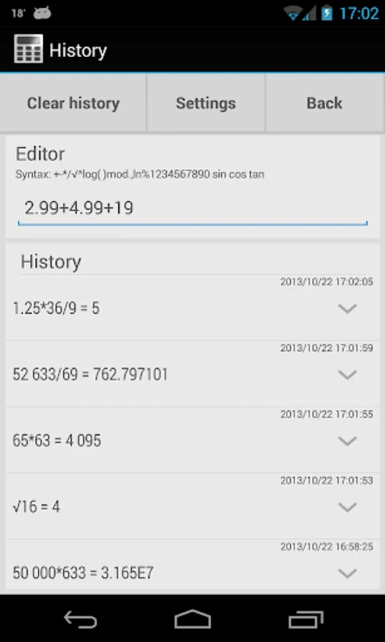 - actions in the history menu (delete, copy equation, copy expression, copy result)