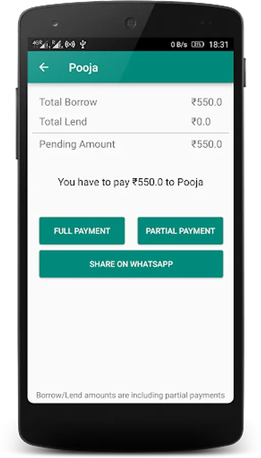 5. View/update, delete or mark as paid in Lend and Borrow tab.