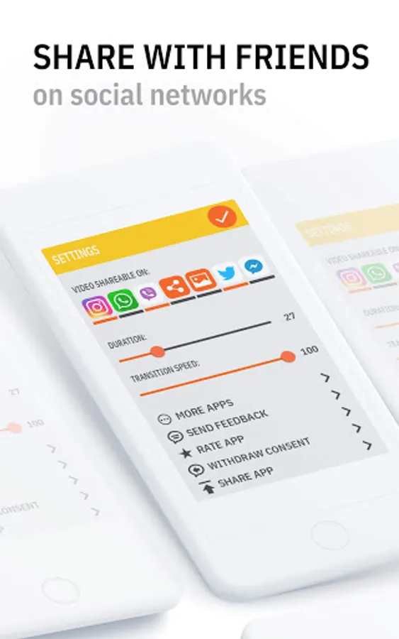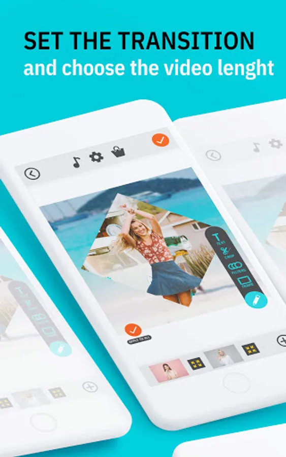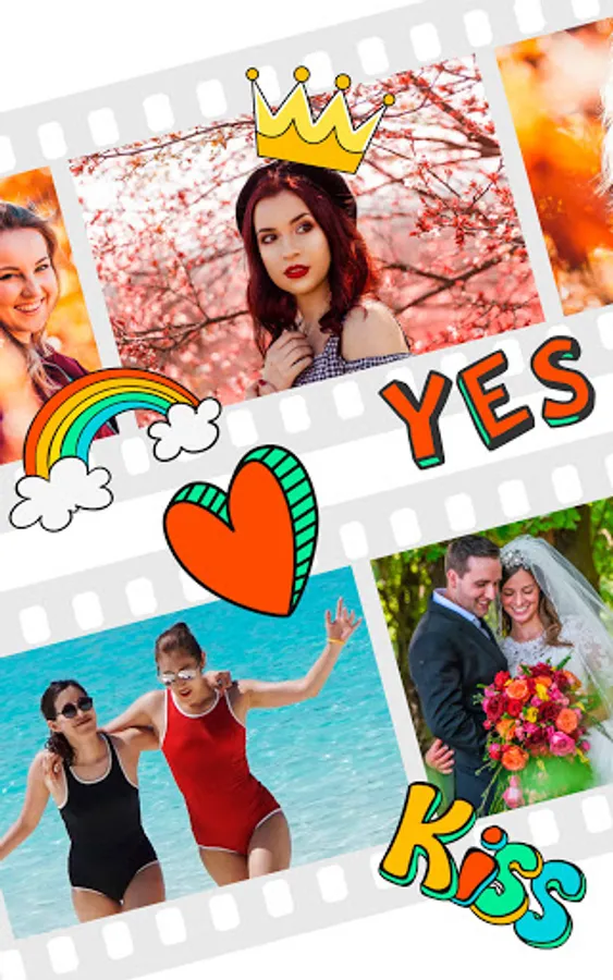 This professional photo video maker with music is perfect for making a happy birthday greeting card video or wedding day slideshow. Make a special pic collage with music and slideshow and surprise your loved ones. Browse through this video maker with music and photos and choose cool picture stickers, photo frames and effects. Add slide transitions, background song, write text on pictures and your video story slideshow is ready! Save your insta story video collage on your device and share it on all social networks!