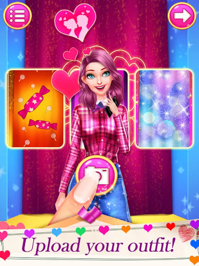 School date artist has 12 playable levels: Hair salon, Spa, Makeup, Manicure, Dress up, Necklace design, Photo shoot, Spa, dress up, Collect the things, Decorate Party room, Take and share the photo.
