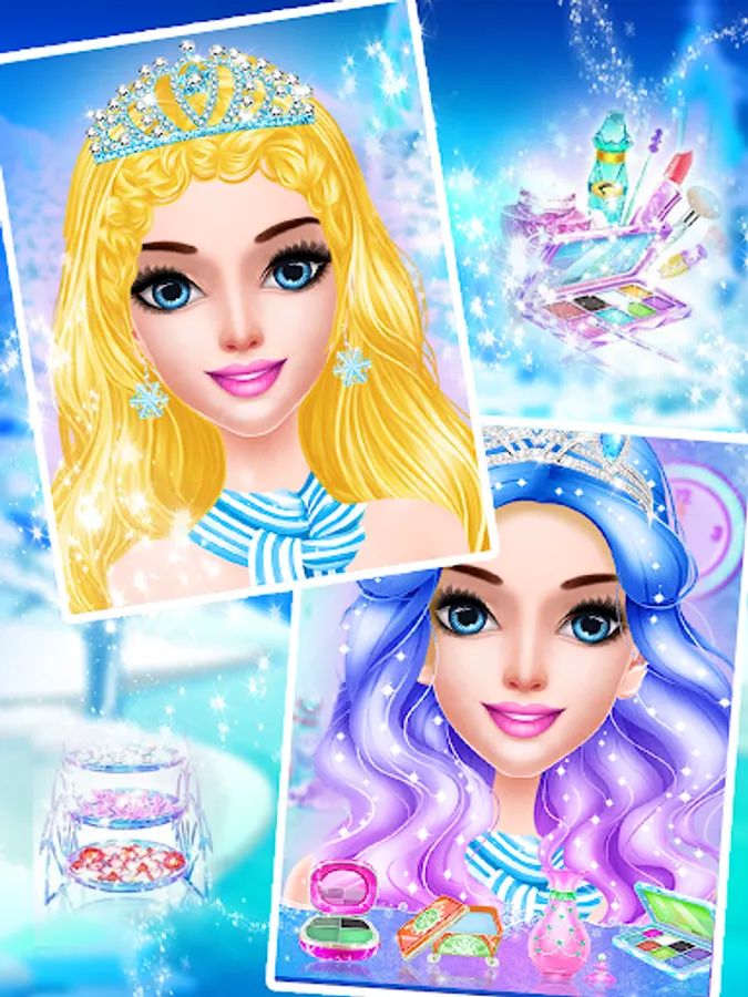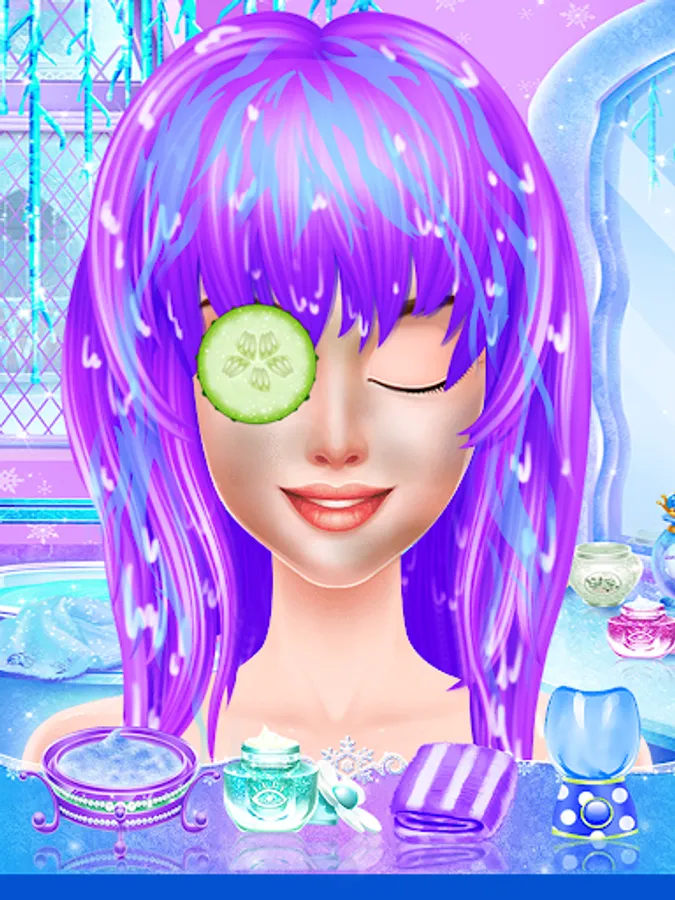 To impress the people in Snow Kingdom, a refreshing bath, a relaxing spa, an ice makeup and a gorgeous wedding outfit will all be needed to guarantee an unforgettable bride look. That's what you will happily experience by playing this game.Pick out your favorite makeup too! Try on eye shadow, eye liner and lipstick. Top off the look with blush, colored contacts and lip gloss. Apply fun face decals featuring wintery items like snowflakes, icicles and snow people!