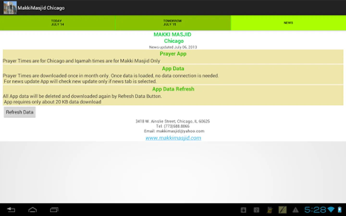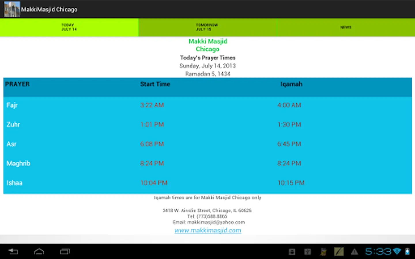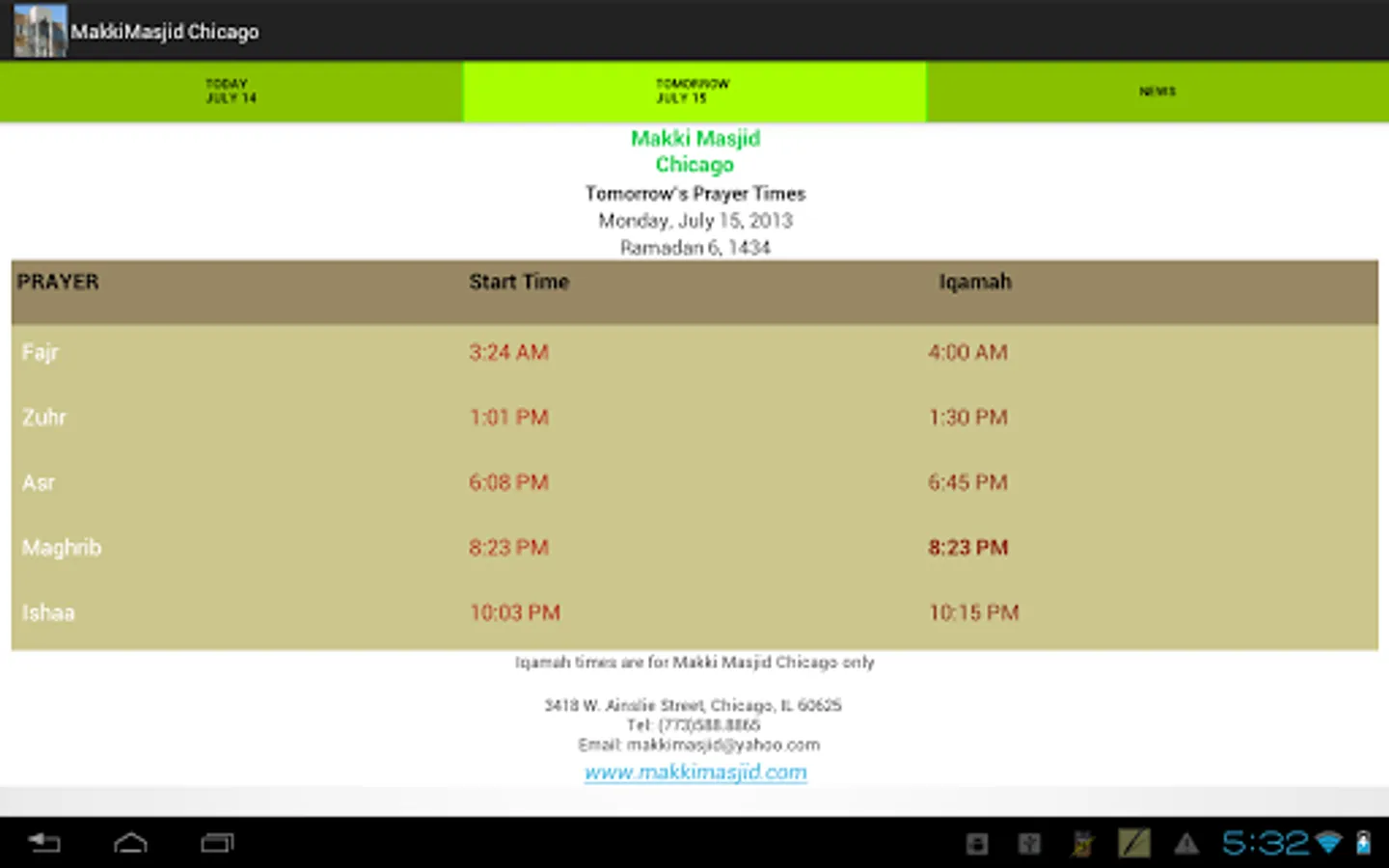 App also provides Daily Iqamah Times for Makki Masjid Chicago.