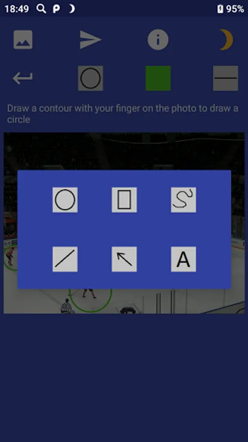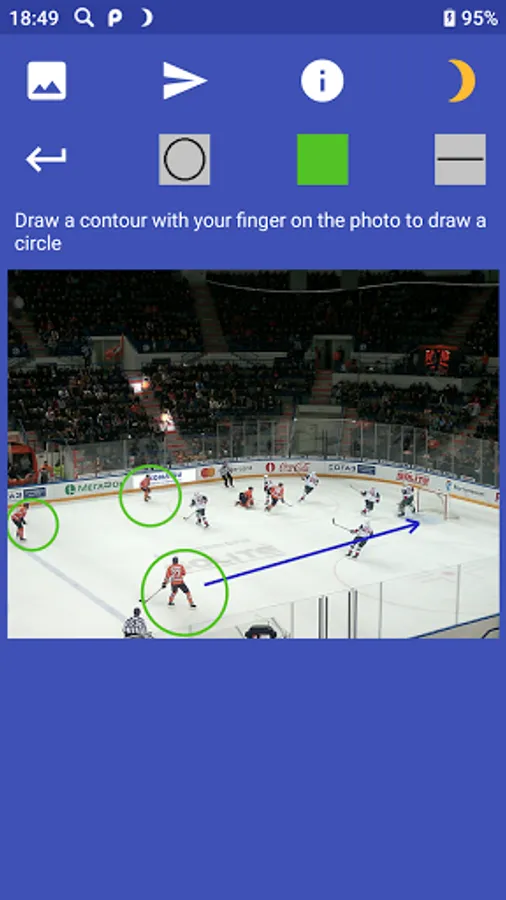 - draw arrows, circles, rectangles, straight and free lines in the picture