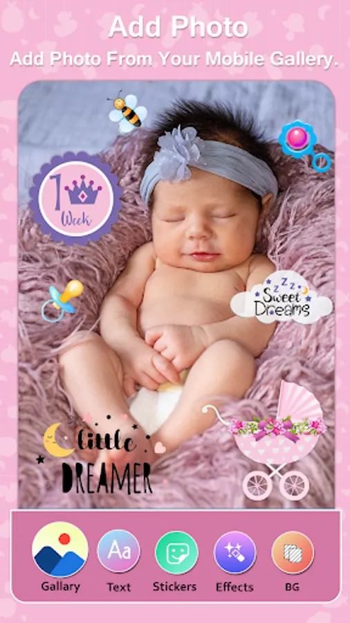 Capture your precious moments and turn them into lasting tiny memories. Baby Photo Editor app makes your pregnancy pics, cute babies photos, and baby milestones into beautiful visual stories.