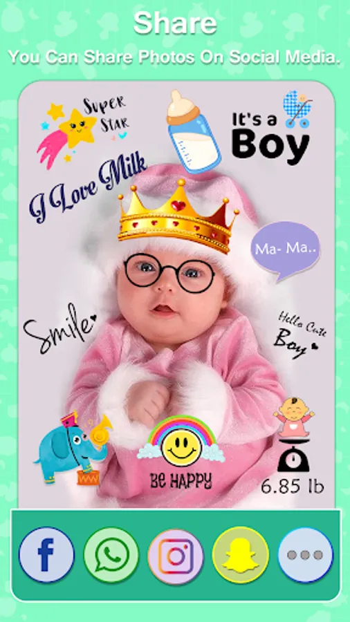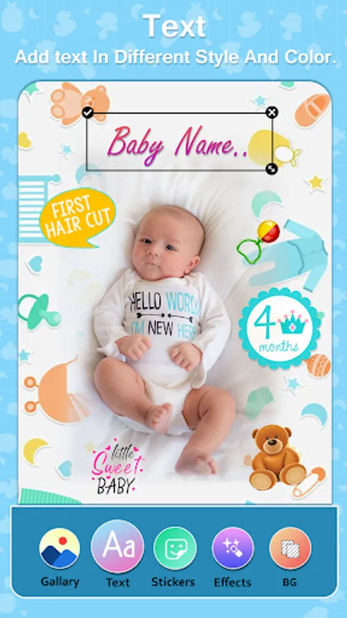 ☺ Add cute phrases, colorful sticker and text on baby photo